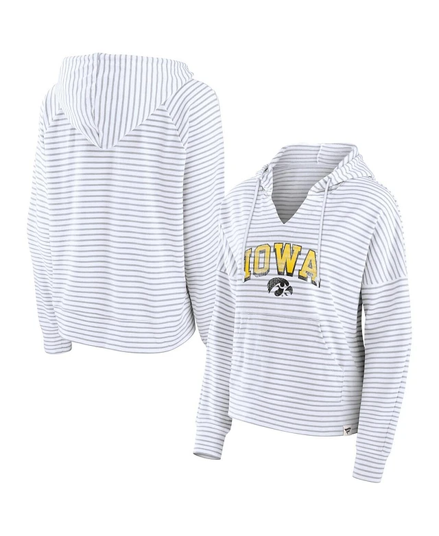 Women's Fanatics White Iowa Hawkeyes Striped Notch Neck Pullover Hoodie