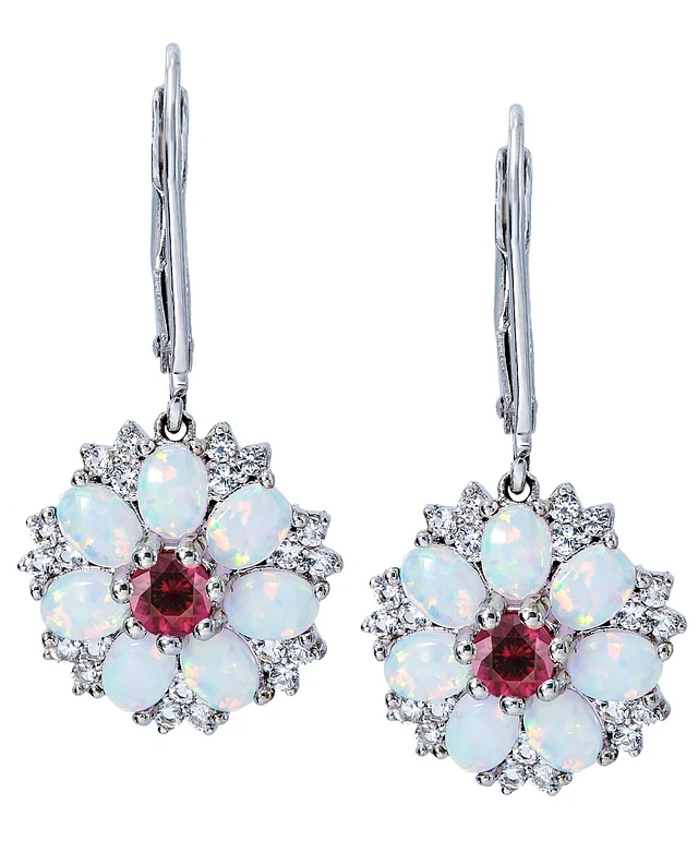 Pink & White Cubic Zirconia Openwork Flower Leverback Drop Earrings in Sterling Silver
