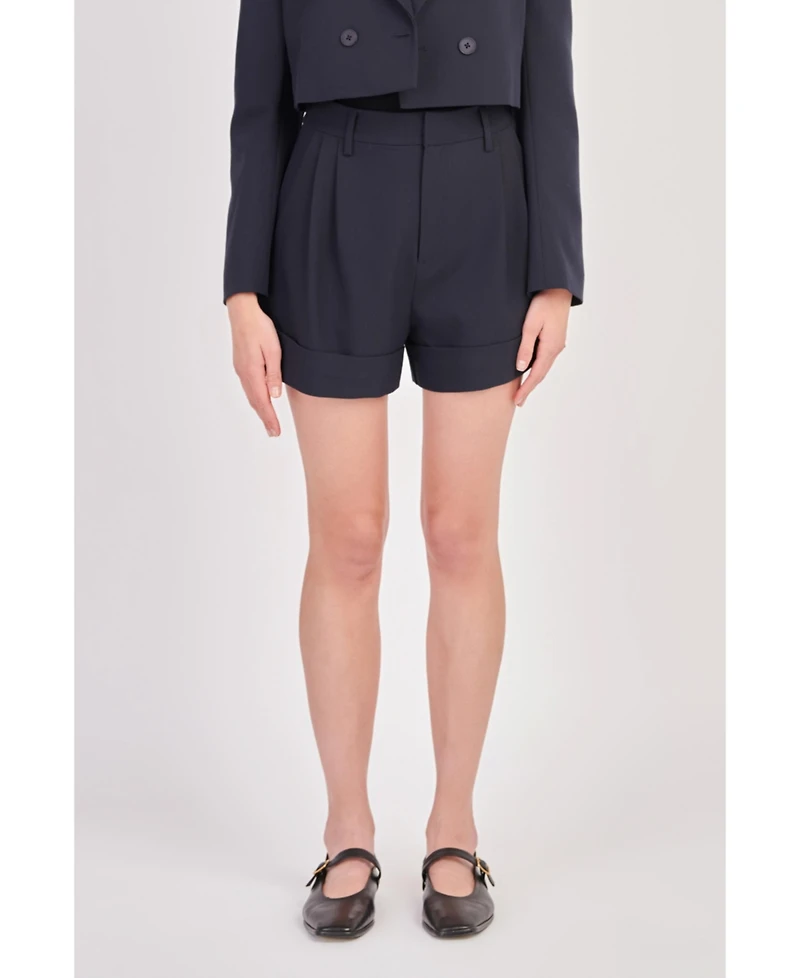 Discover our High-waisted Cuffed Shorts that will be your favorite everyday go-to. With hem cuffed detail front hooks and bar closure with an invisible zipper and side pockets for extra convenience our shorts provide stylish comfort and practicality.