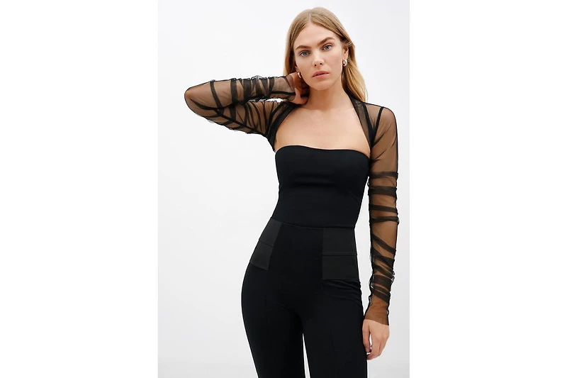 Madison is the little mesh bolero with a whole lot of impact from Marcella. Cocktail-ready Madison fits your form but lets you move. Her extra-long sleeves are designed to softly gather up the length of the arm, for a chic style that's both edgy and refined. In soft, European mesh with stretch.