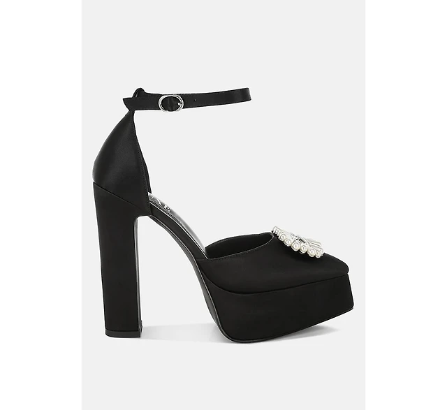 Womens Maeissa Pearls Brooch Detail Platform Block Heel Sandals