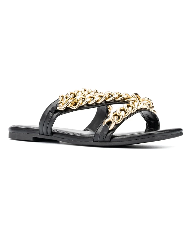 Journee Collection Womens Primah "H" Band Medium and Wide Width Slip On Flat Sandals