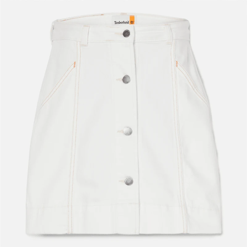 Discover the Women's REFIBRA™ Fabric Skirt crafted with a blend of 67% Cotton, 32% Tencel Lyocell, and 1% Elastane. Featuring leather badge branding and a button-opening closure, this skirt helps showcase timeless elegance. Two side pockets help offer convenience and the front button closure and a comfort stretch help add to the list of benefits.