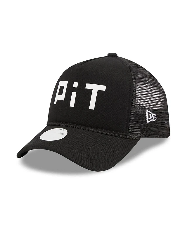 New Era Men's Black Pittsburgh Pirates Retro Bold A-Frame Trucker 9FORTY Adjustable Hat
