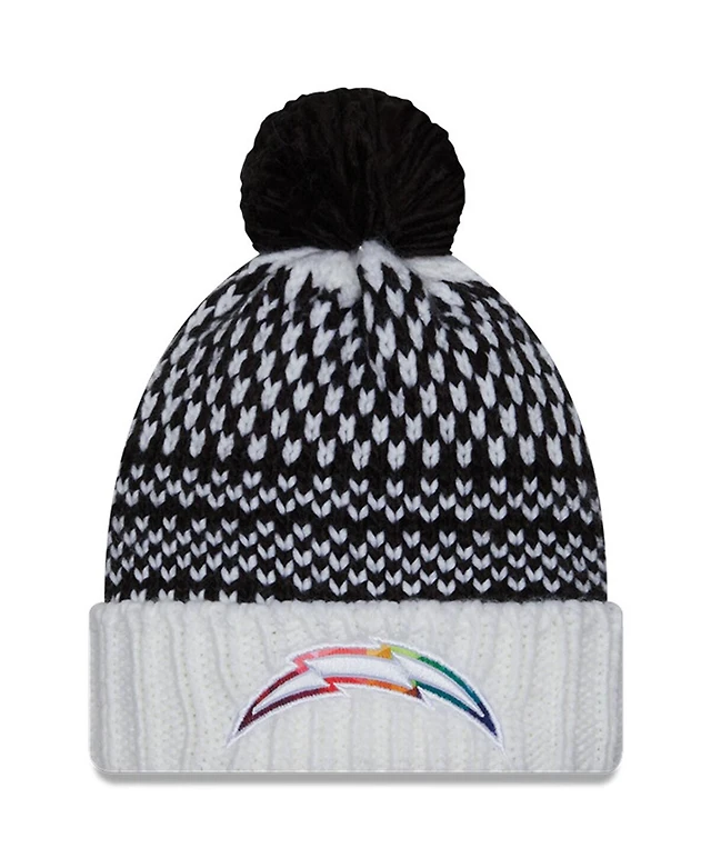 Women's New Era Black, White Los Angeles Chargers 2023 Nfl Crucial Catch Cuffed Pom Knit Hat