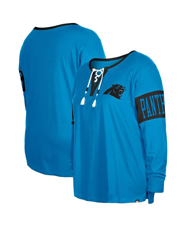 Women's New Era Blue Carolina Panthers Plus Size Lace-Up Notch Neck Long Sleeve T-shirt