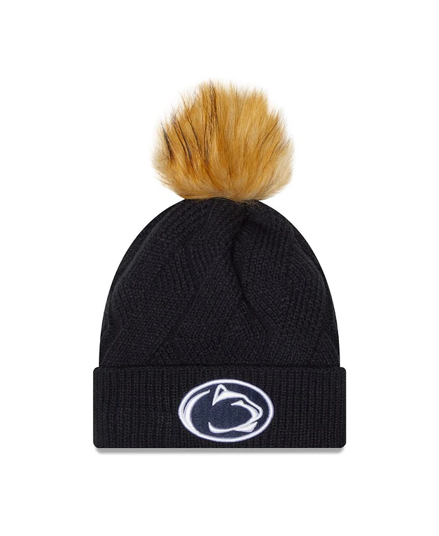 Women's New Era Navy Penn State Nittany Lions Snowy Cuffed Knit Hat with Pom