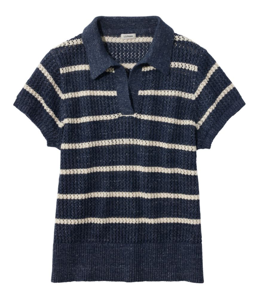 Designed specially for warmer weather, this polo sweater features beautiful pointelle openwork and lightweight organic cotton yarns.