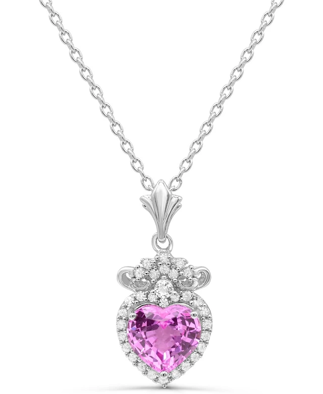 Feel royal with this whimsical tiara-topped Created pink sapphire heart with white sapphire accents in 18"" length pendant necklace.