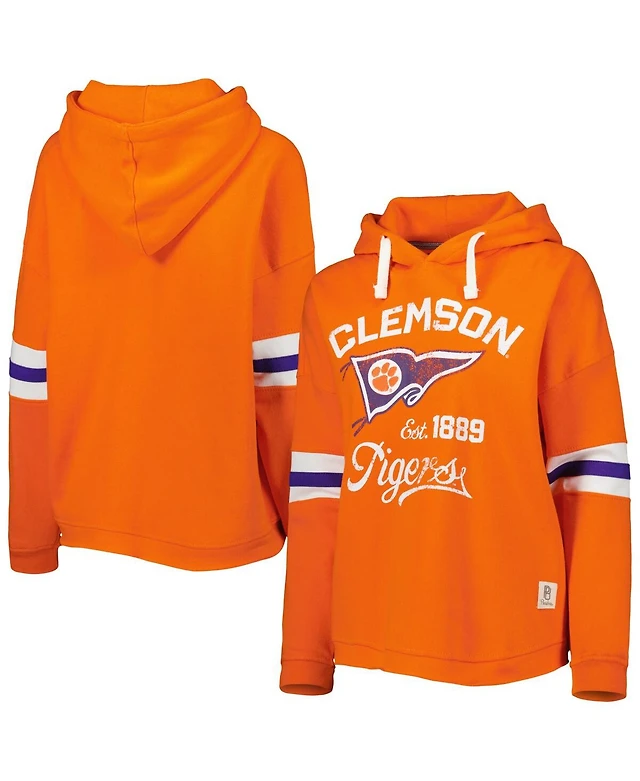 Women's Pressbox Orange Distressed Clemson Tigers Super Pennant Pullover Hoodie