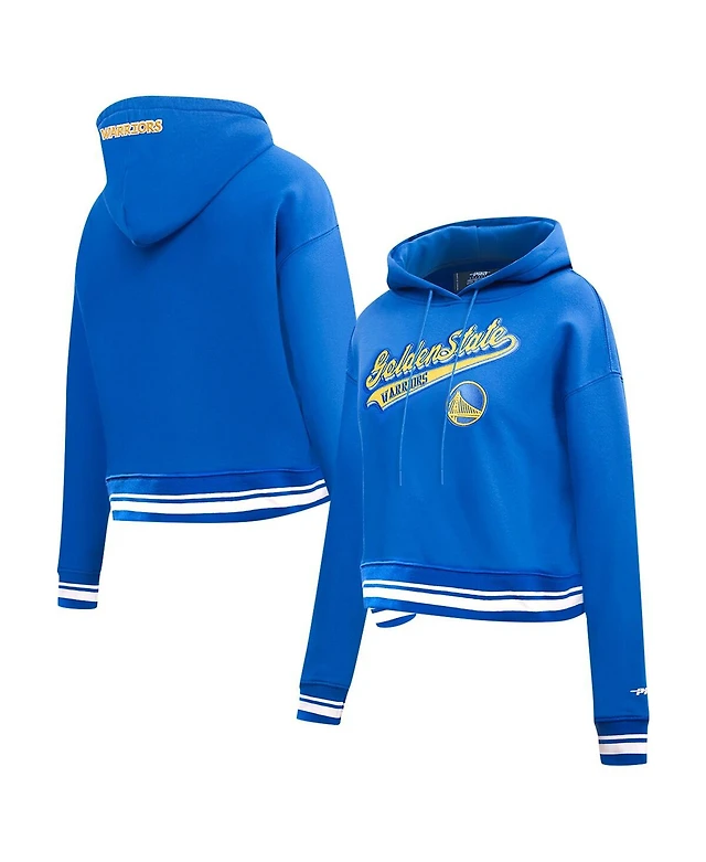 Women's Pro Standard Royal Golden State Warriors Script Tail Cropped Pullover Hoodie