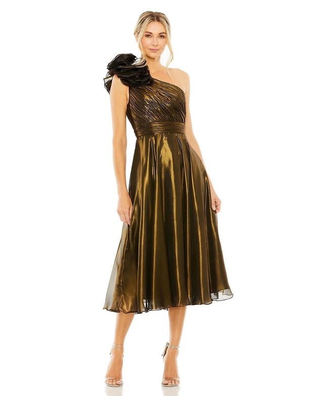 Women's Iridescent One Shoulder Rosette Ball Gown