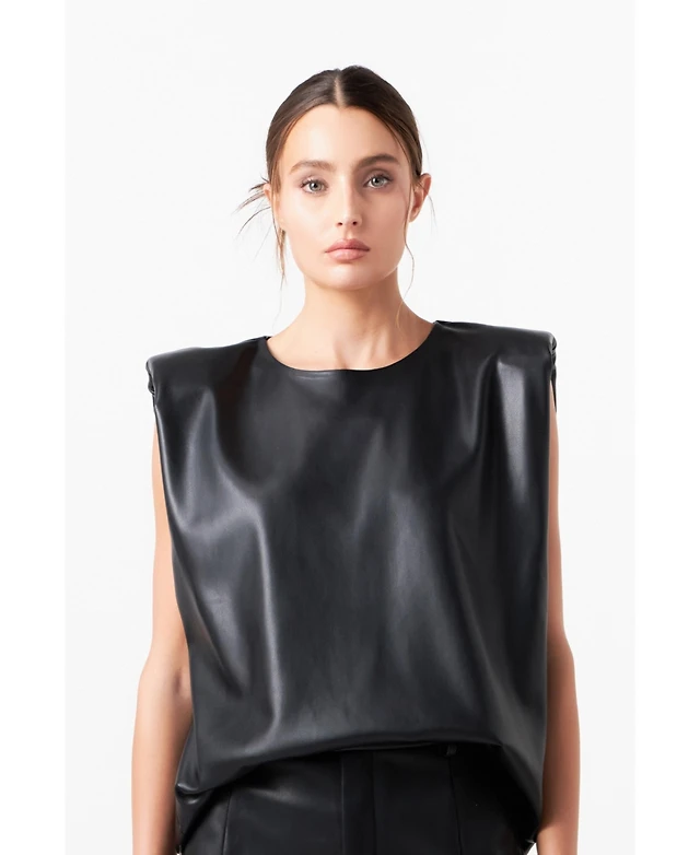 Women's Shoulder Padded Leather Top