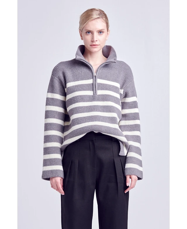English Factory Women's Zip Up Striped Sweater
