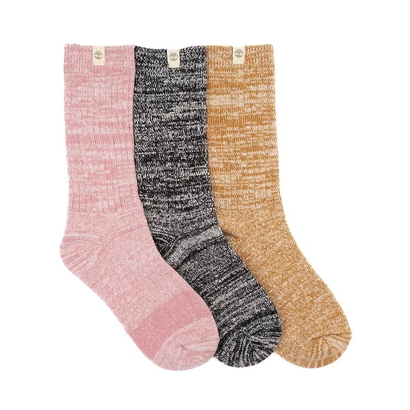 Womens Timberland Rag Wool Crew Socks 3 Pack - Wheat / Pink / Black