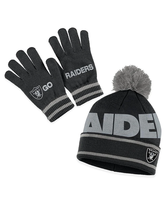 Women's Wear by Erin Andrews Black Las Vegas Raiders Double Jacquard Cuffed Knit Hat with Pom and Gloves Set