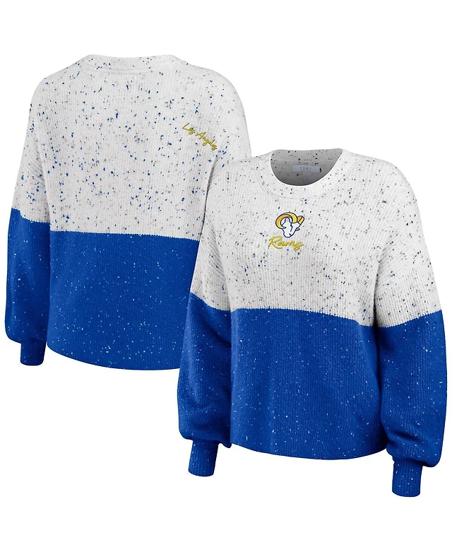 Women's Wear by Erin Andrews White, Royal Los Angeles Rams Lighweight Modest Crop Color-Block Pullover Sweater