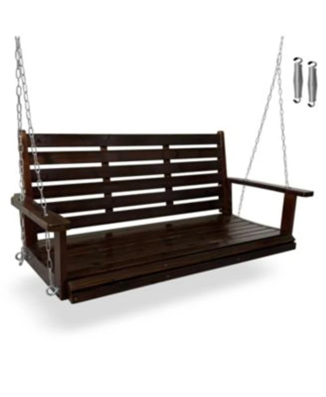 Wooden Porch Swing Ergonomic Seat Bench Swing With Hanging Chains 7mm Springs Heavy Duty 880 Lbs For Outdoor Patio Garden Yard Deep Brown 3 Seater Extra Large
