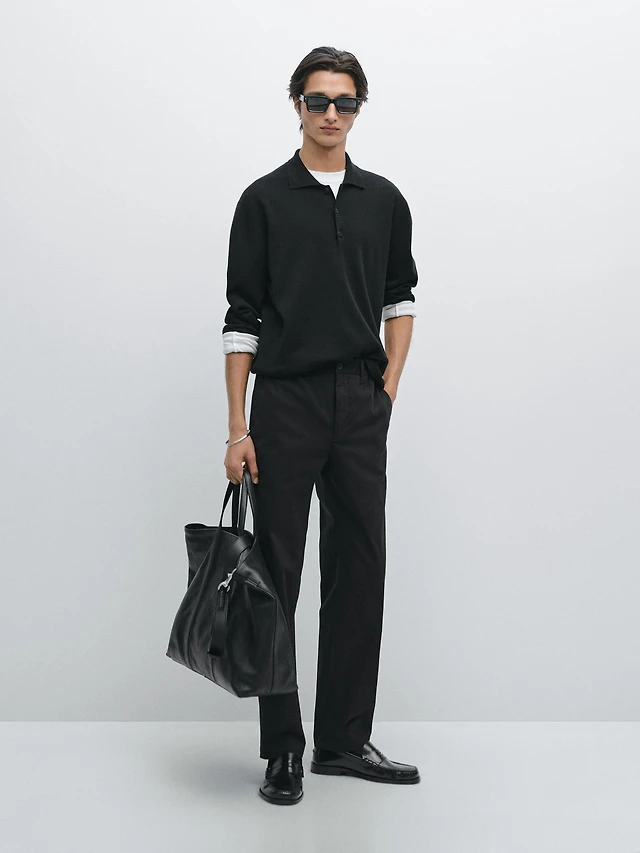 Merino wool knit polo sweater
