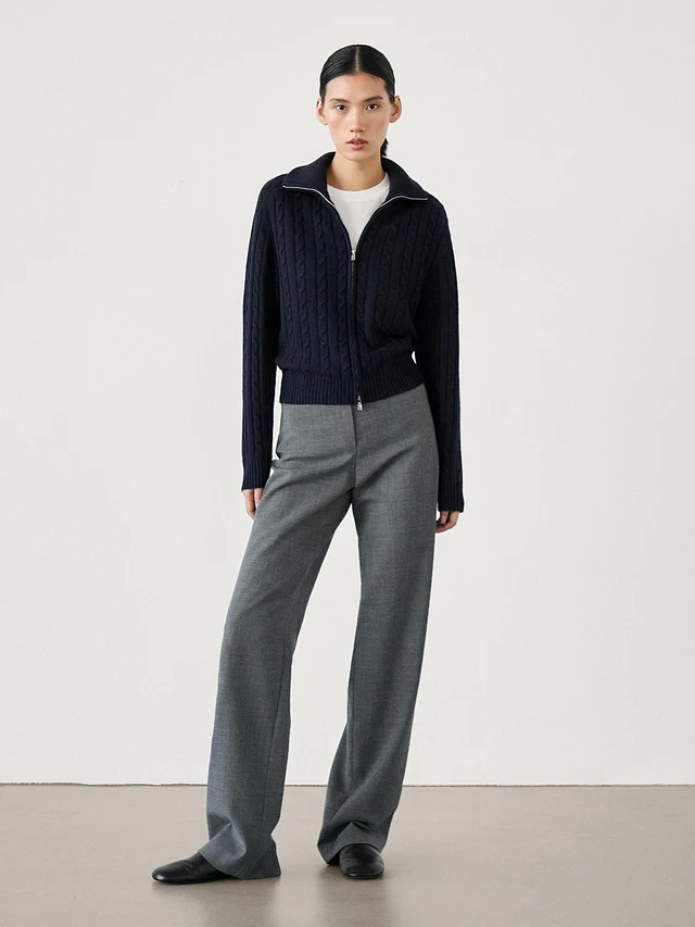 Wool blend cable-knit cardigan