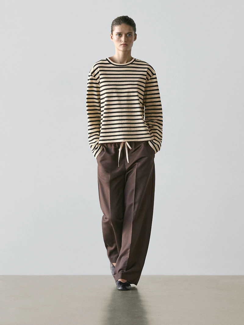 Wool blend contrast drawstring trousers