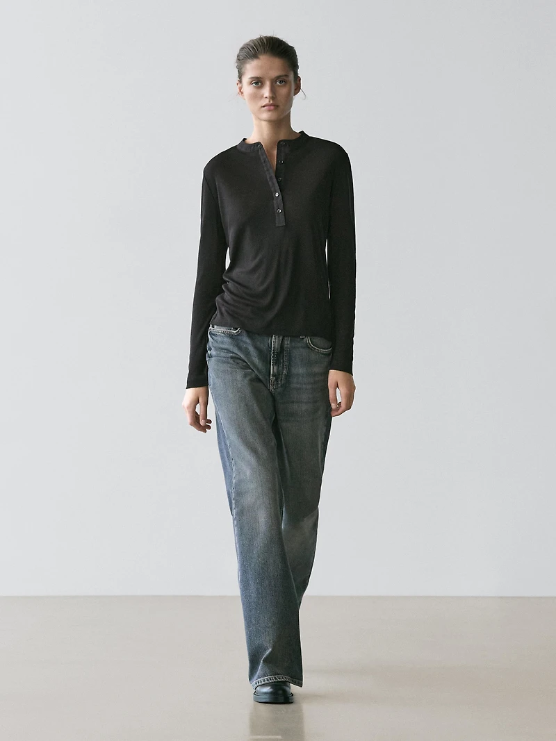Wool blend henley neck T-shirt