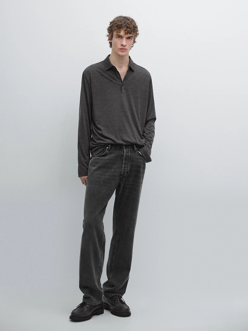Wool blend knit polo sweater