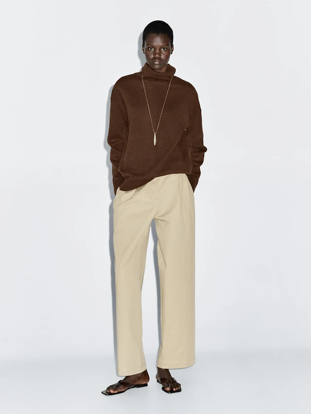 Ribbed Oversized Turtleneck Sweater Wool Blend
