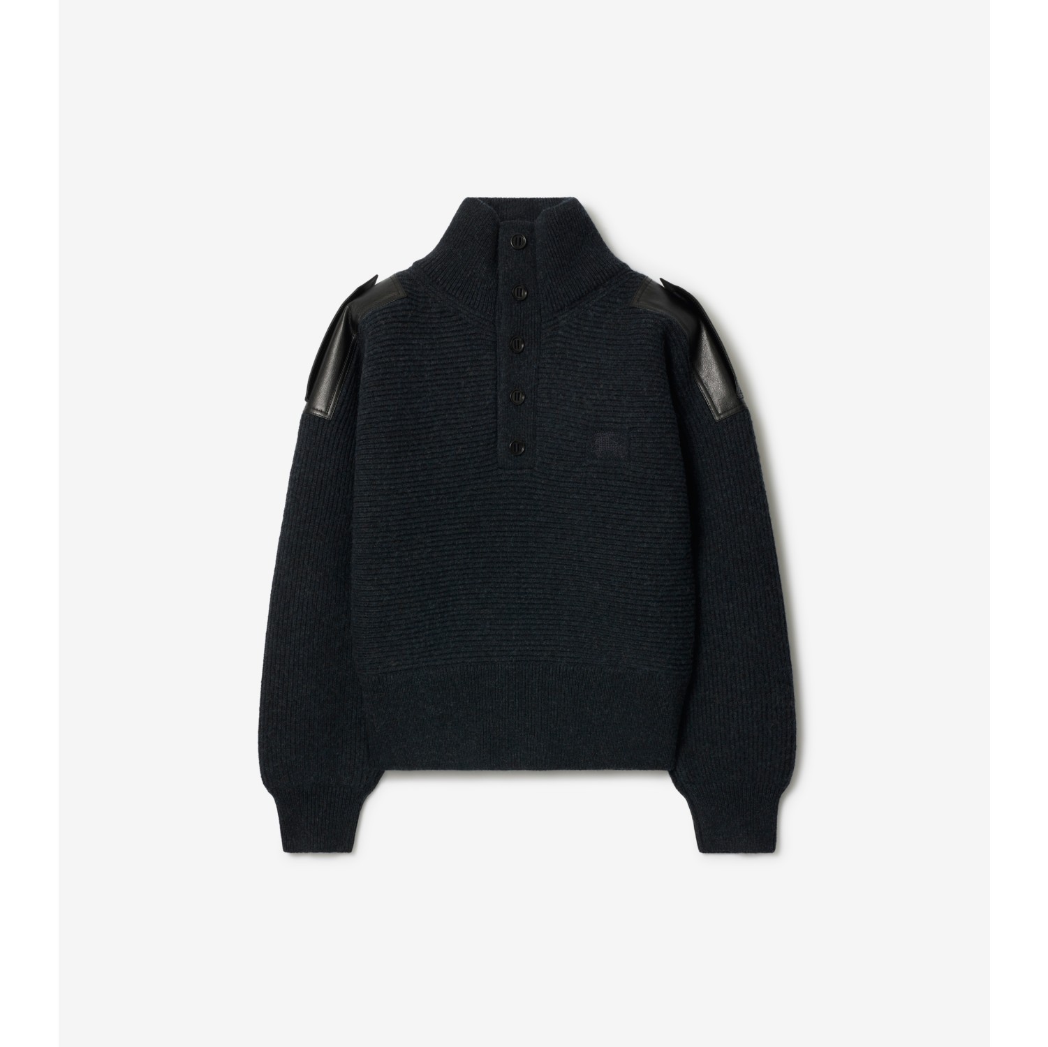 A turtleneck sweater made in Italy from a heavyweight wool blend, brushed on the inside for a soft feel. Debuted on the Burberry Winter 2025 runway, the rib-knit style is shaped to a relaxed fit and features leather epaulettes. Our Equestrian Knight Design is subtly cross-stitched at the chest. Button placket Embroidered Equestrian Knight Design at chest