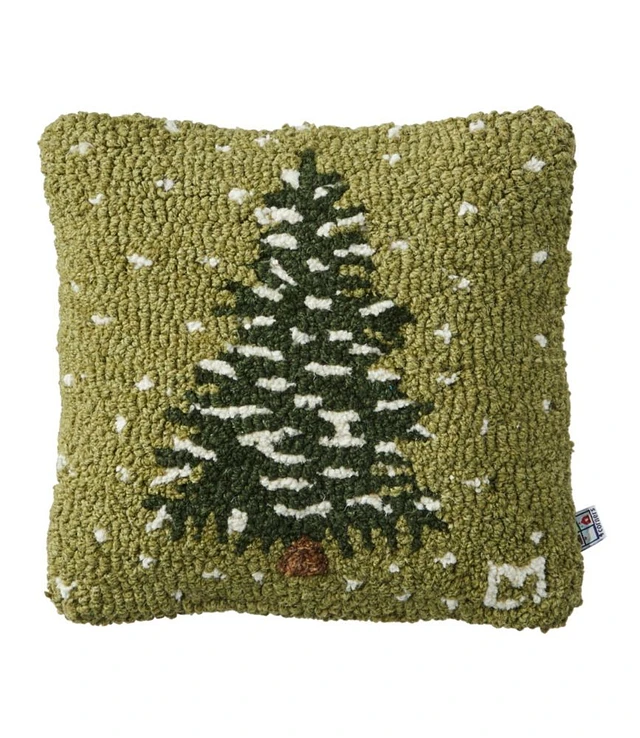 Wool Hooked Throw Pillow, Frosted Tree, 14" x 14"
