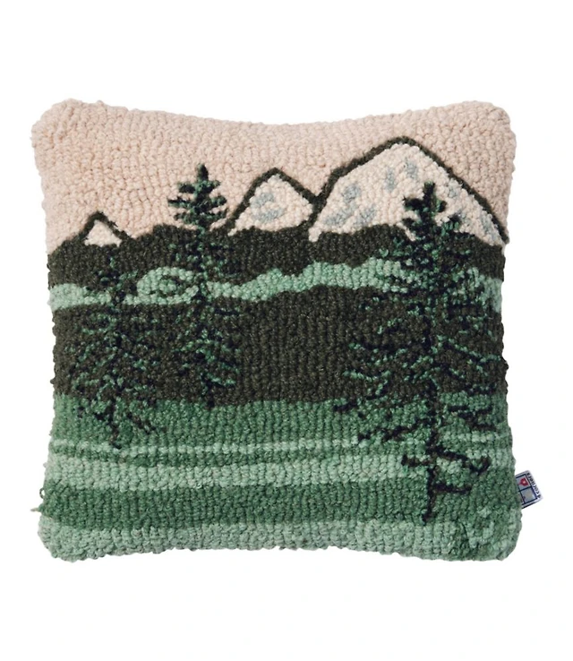 Wool Hooked Throw Pillow, Mountains, 14" x 14"