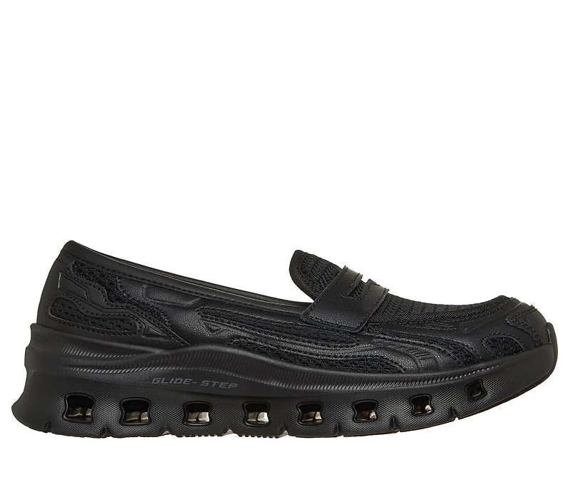 Experience slip-resistant safety in classic style with Skechers Work™ Slip-Resistant: Glide-Step Pro - Strelia. This easy-on loafer features a mesh and leather overlay upper, our Glide-Step® geometric cushioned midsole, a slip-resistant outsole, and a Skechers Air-Cooled Memory Foam® cushioned comfort insole.