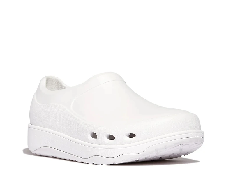 Delivering technical features needed in healthcare and hospitality fields combined with FitFlop ergonomic comfort, the Work+ clog has you covered for those long shifts. This anti-static, slip-resistant pair is made of light injection-molded EVA foam and features a pressure-diffusing Microwobbleboard midsole with triple-density EVA cushioning.