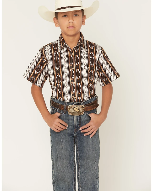 Wrangler Boys' Checotah Southwestern Striped Short Sleeve Pearl Snap Western Shirt