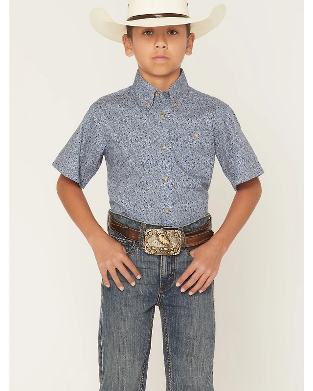 Wrangler Boys' Paisley Print Short Sleeve Button-Down Western Shirt