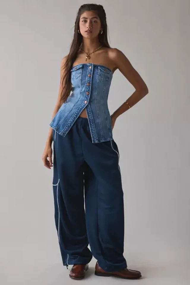 UO Angelique Fit-And-Flare Strapless Denim Mini Dress