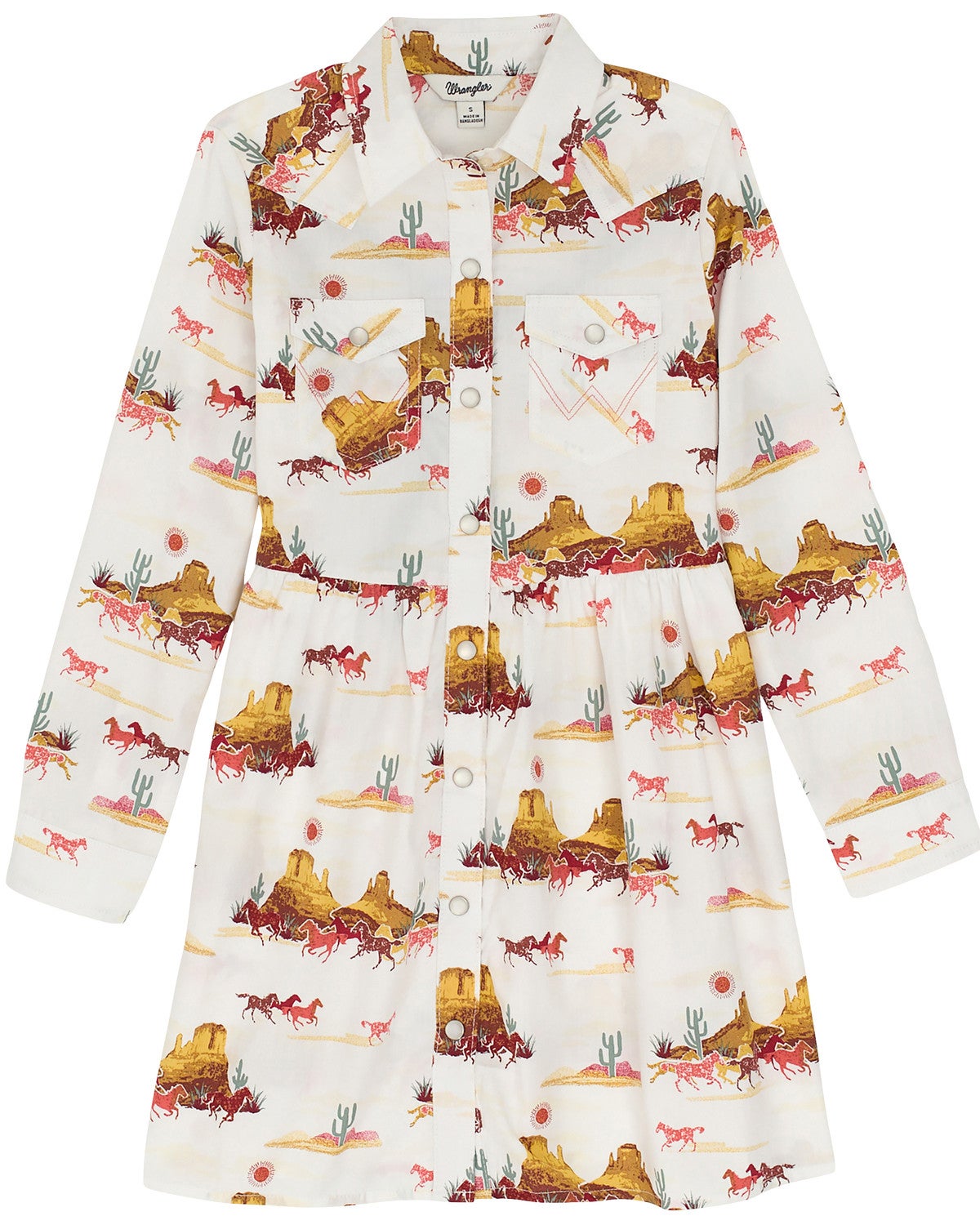 Wrangler Girls' Desert Print Long Sleeve Pearl Snap Dress