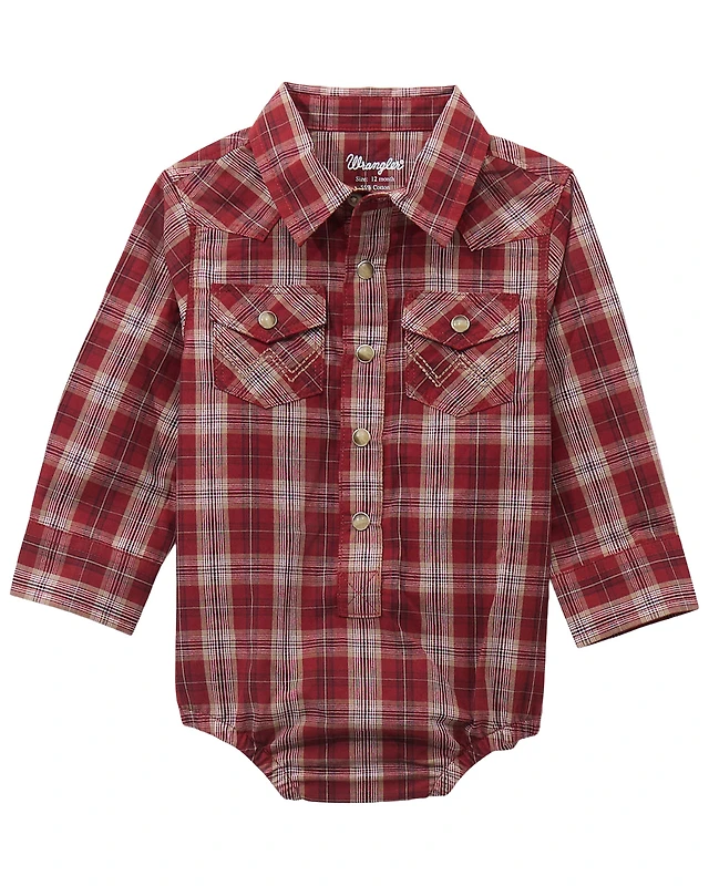 Wrangler Infant Boys' Plaid Print Long Sleeve Snap Western Onesie