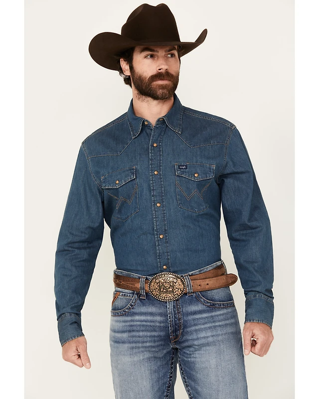 Wrangler Men's Medium Wash Denim Long Sleeve Snap Western Shirt