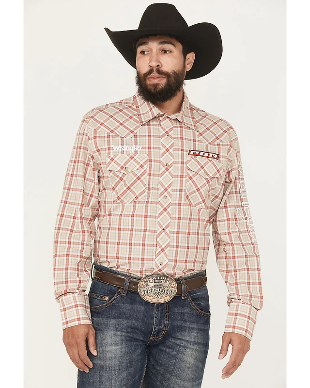 Wrangler Men's PBR Plaid Print Long Sleeve Snap Western Shirt