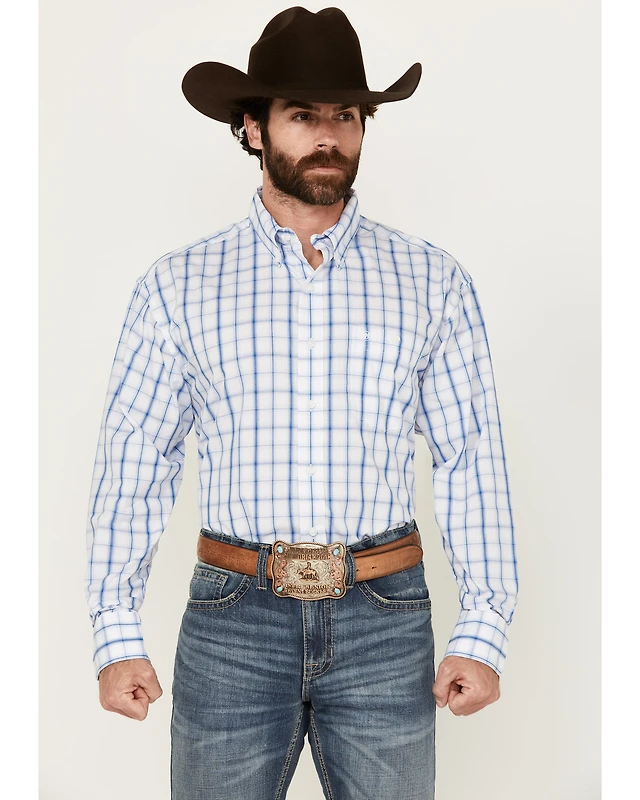Wrangler Men's Plaid Print Long Sleeve Button-Down Western Shirt