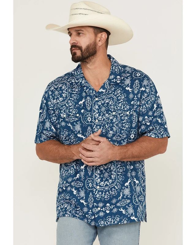 Wrangler Men's Coastal Cowboy Print Short Sleeve Snap Western Shirt
