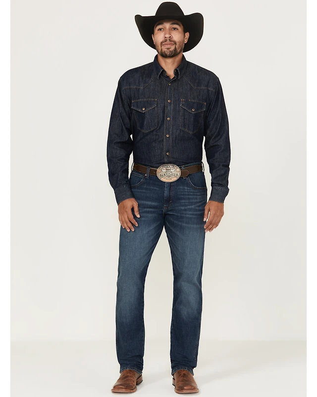 Wrangler Retro Men' Dark Wash Relaxed Bootcut Stretch Denim Jeans