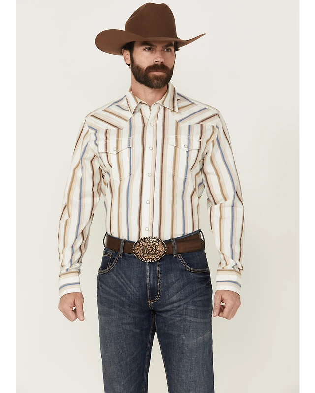Wrangler Retro Men's Premium Striped Long Sleeve Snap Western Shirt