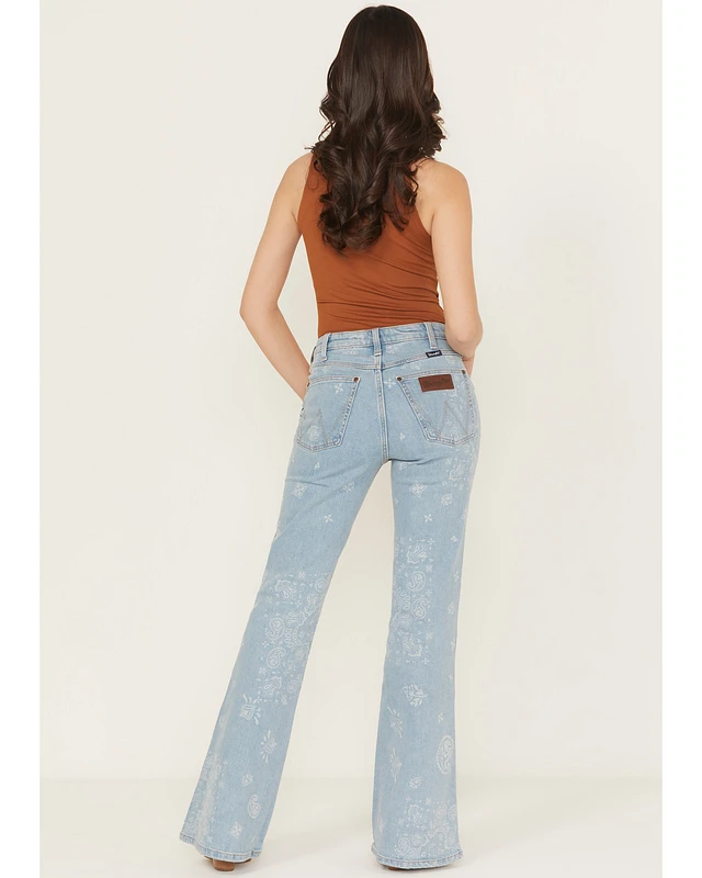 Wrangler Retro Women's Bailey High Rise Paisley Print Flare Stretch Denim Jeans