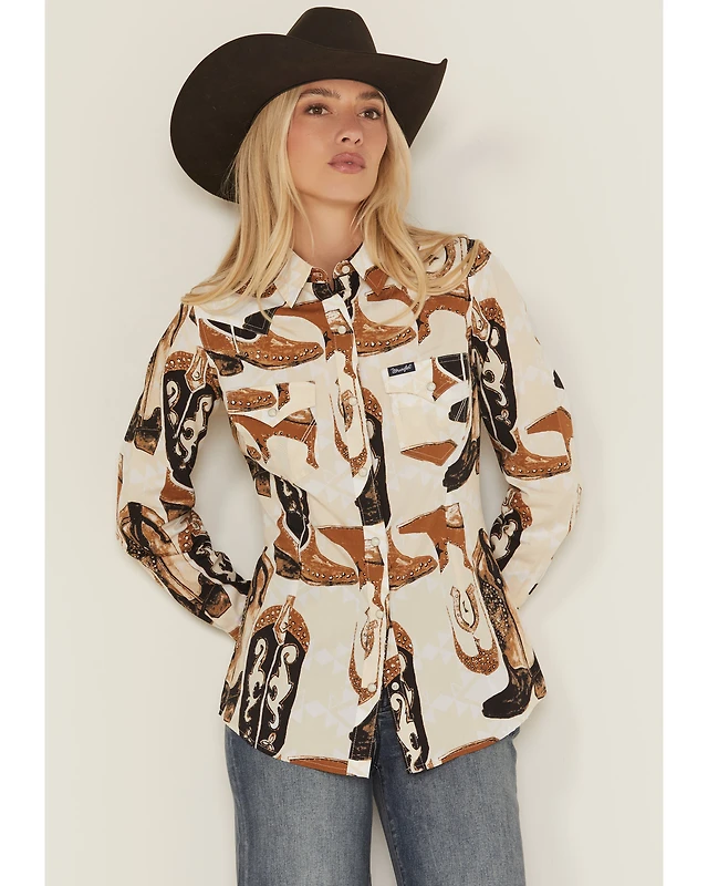 Wrangler Retro Women's Boot Print Long Sleeve Snap Western Shirt