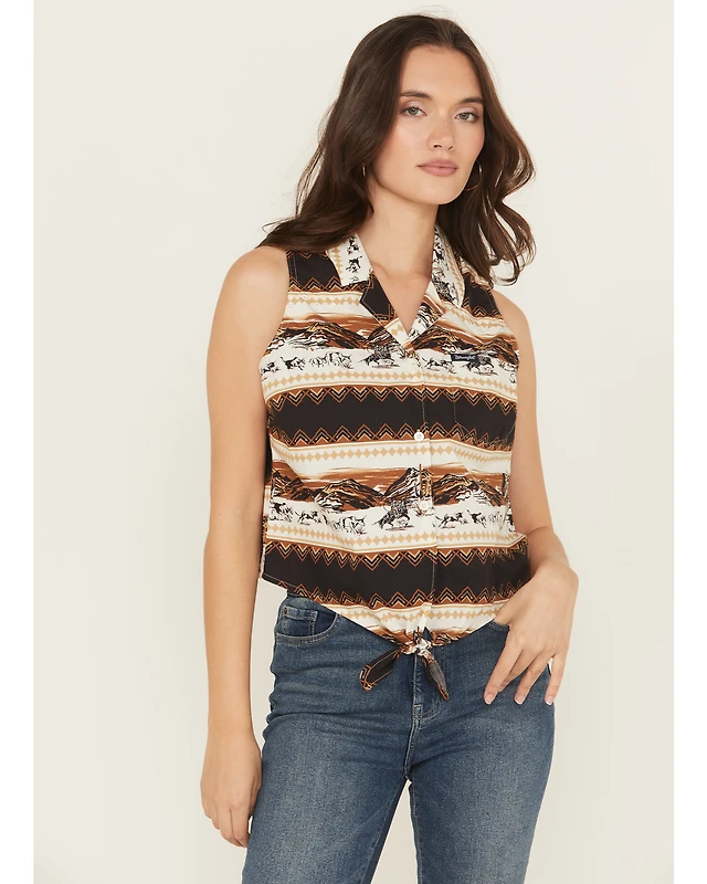 Wrangler Retro Women's Southwestern Print Sleeveless Button-Down Tie-Front Western Shirt