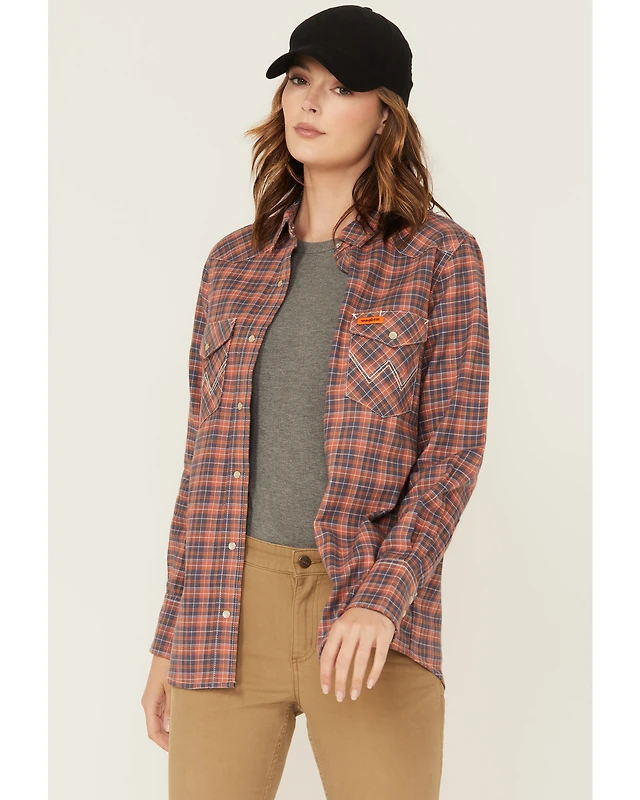Wrangler Women's FR Riverside Plaid Print Long Sleeve Snap Work Shirt