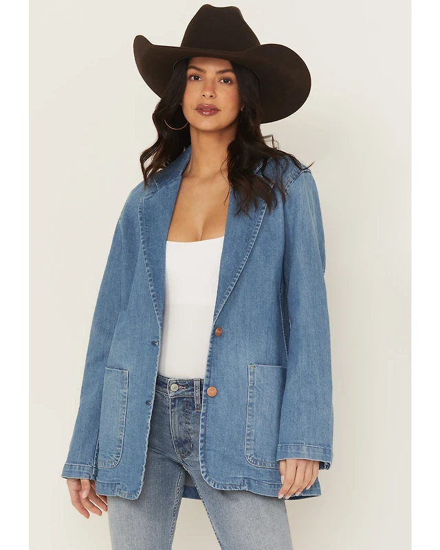 Wrangler Women's Modern Button-Down Denim Blazer