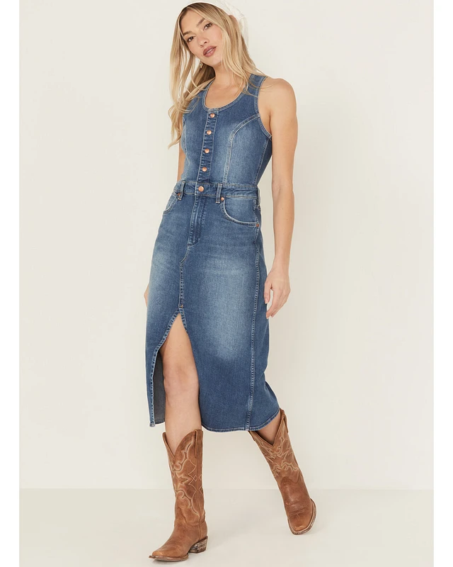 Wrangler Women's Racerback Button-Down Denim Midi Dress